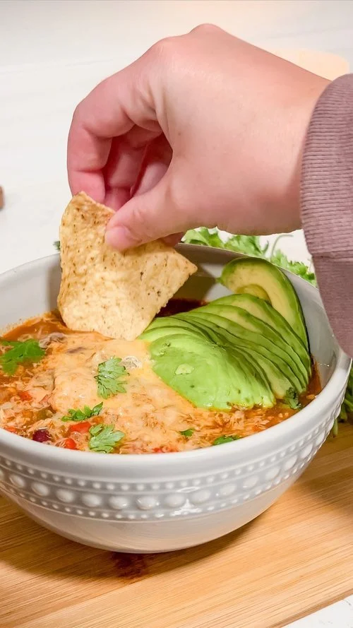 This hearty chicken tortilla-less soup is packed full of protein, fat, fiber and flavor! If you’re not low carb this can be eating with some tortilla chips!
