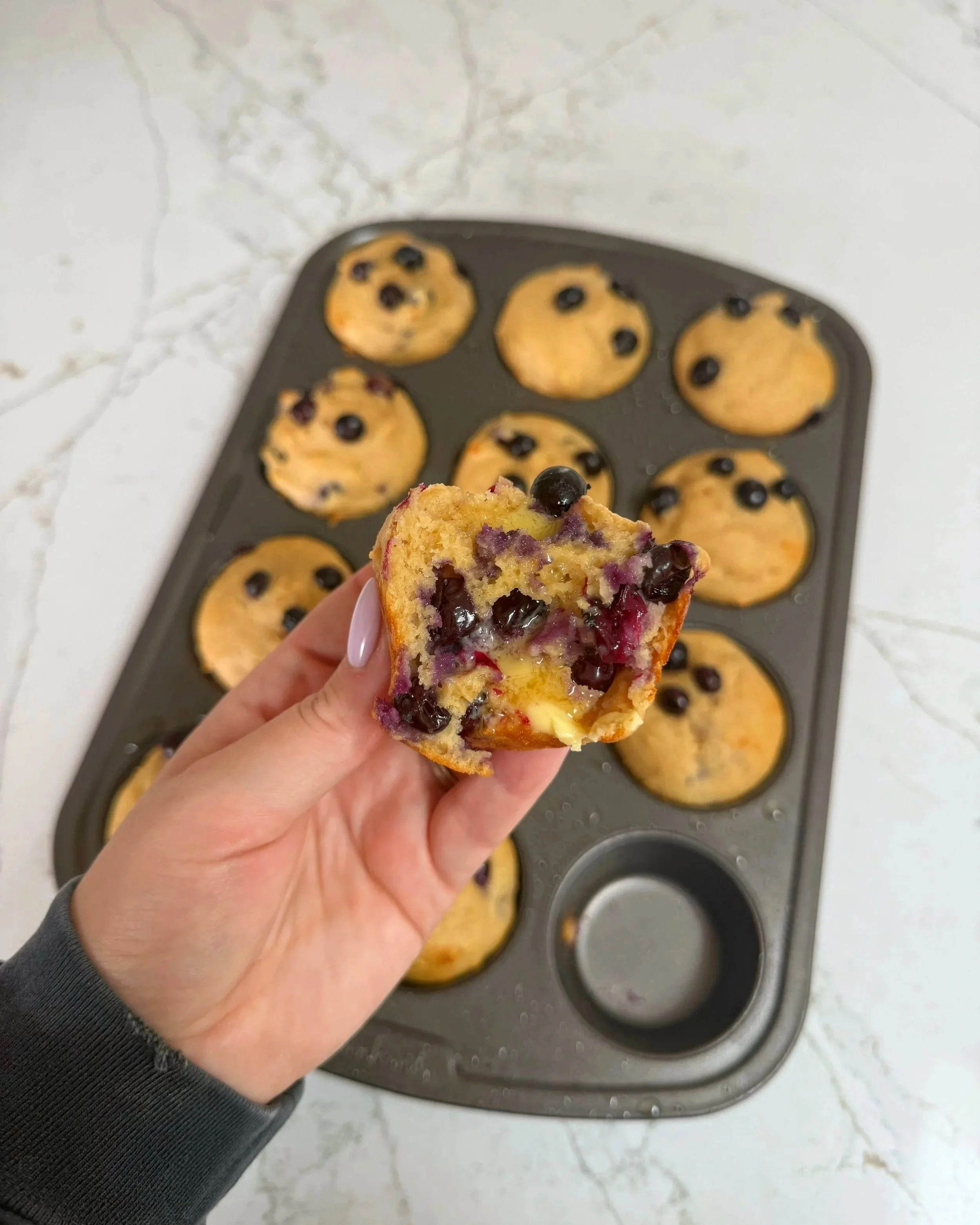 High Protein Blueberry Pancake Muffins