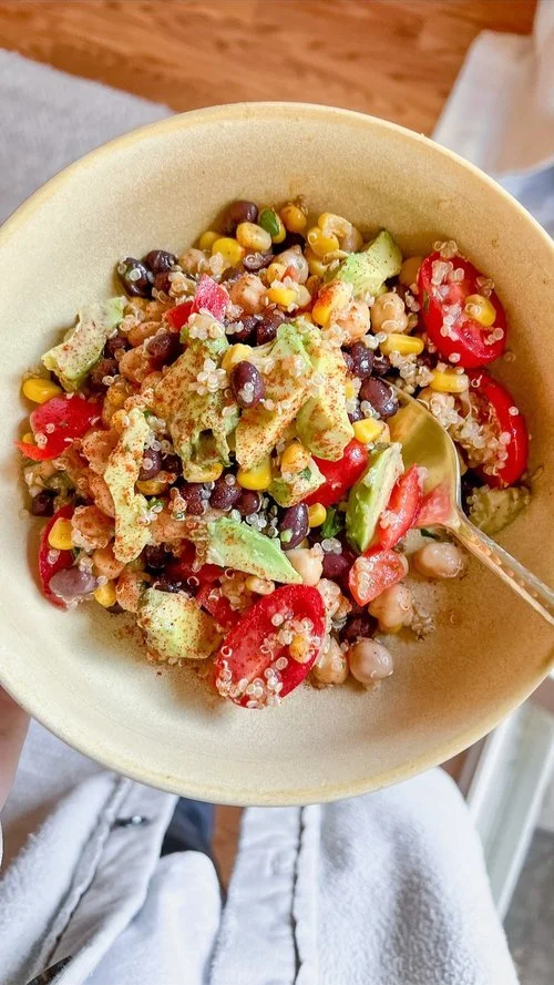 These mexican quinoa bowls are our go to meal prep lunch. Not only are they so easy to make the chili lime vinaigrette adds so much flavor!