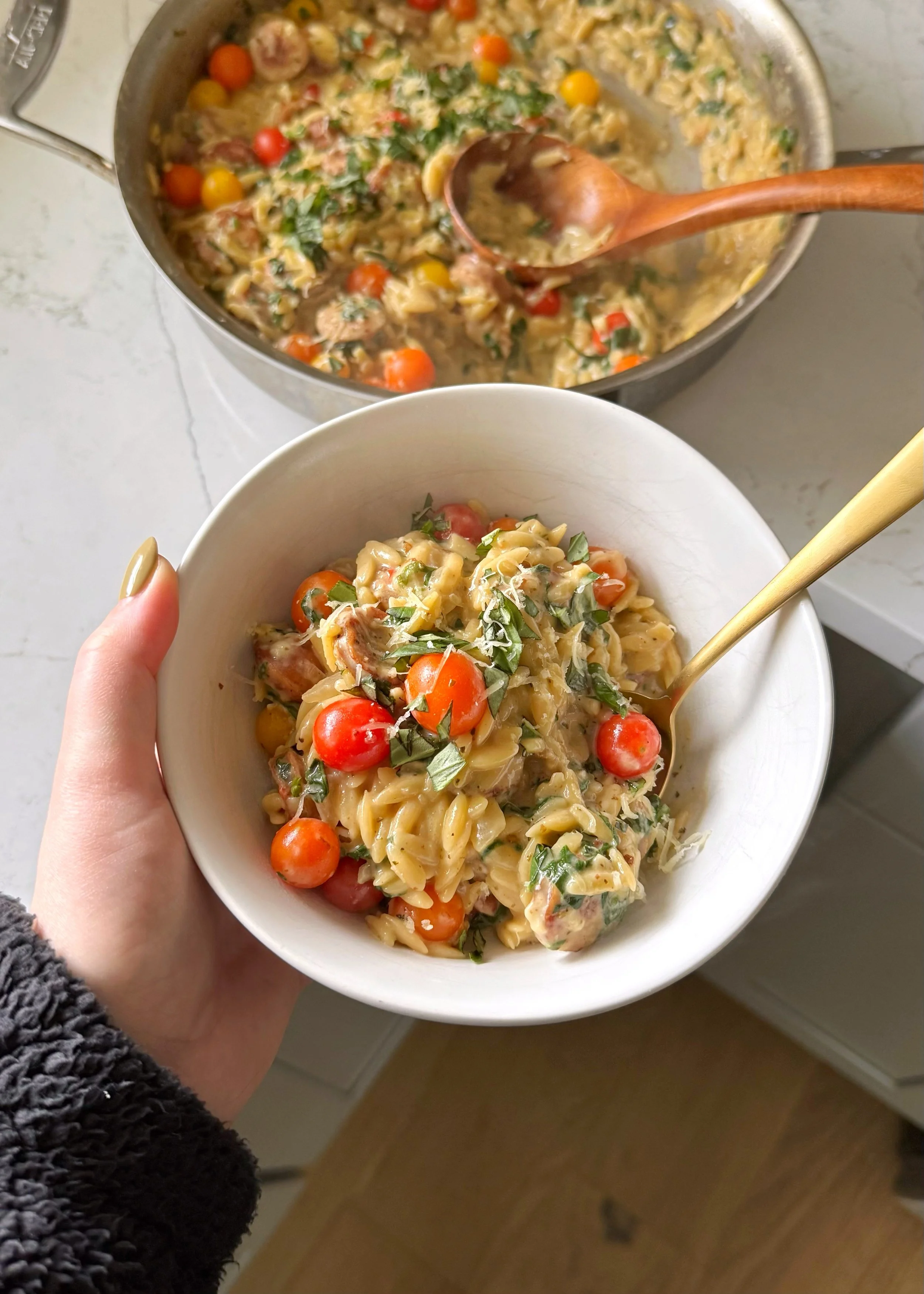 One Pan Lemony Chicken Sausage Orzo