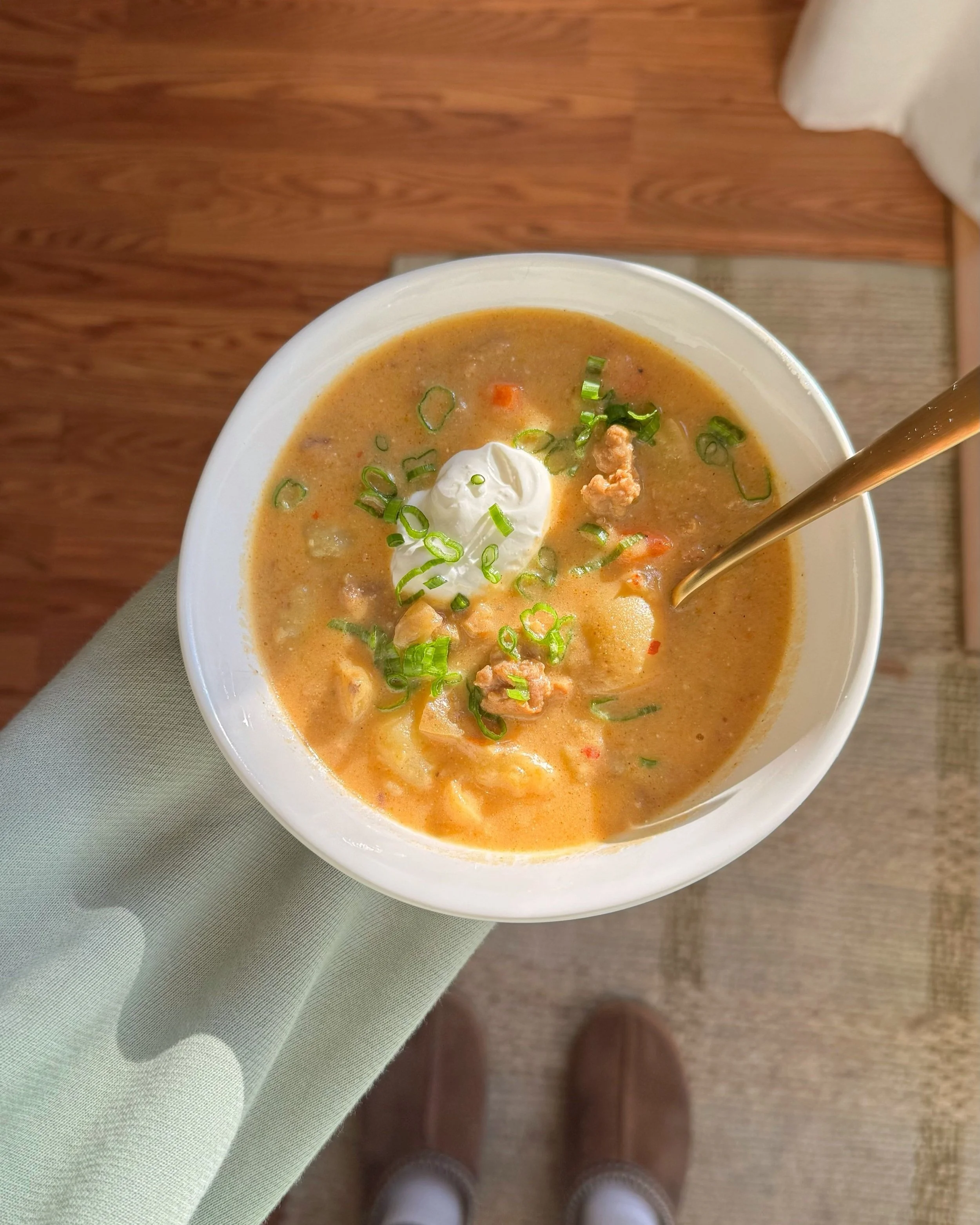 Serve immediately with your favorite toppings! I like to add a dollop of sour cream and some sliced green onions. Enjoy!