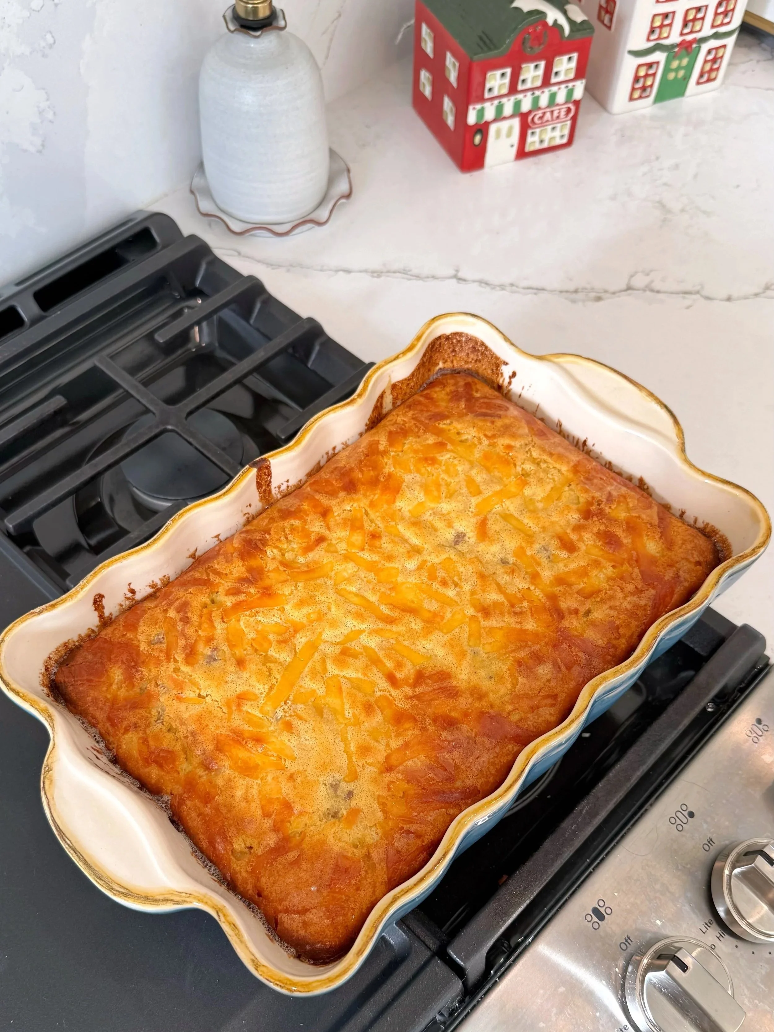 Add the cooked sausage to the batter and gently fold until evenly incorporated.